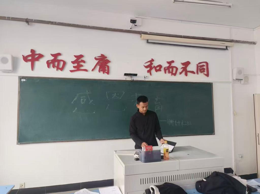 本次活动旨在引导同学们感知身边的善意与付出,学会感恩父母、老师、同学及社会,将感恩之心转化为积极行动,营造温暖互助的班级氛围。首先,李志鸿同学以“你最近一次感受到温暖是因为什么事”为切入点,结合自身经历分享——比如“上次考试失利后,室友主动帮我梳理知识点”,用真实事例引发同学们对“感恩”的思考,随后点明活动核心:感恩藏在日常小事里,需要主动发现与回应。随后,同学们分组交流分享,有人谈到“父母每天早起为自己准备早餐,以前觉得理所当然,现在想每天说句‘谢谢’”,有人提及“老师课后单独辅导难题,要找机会表达感谢”,大家在分享中互相启发,更深刻地体会到身边的付出。最后,李志鸿同学提议开展“感恩行动小计划”,鼓励同学们用主动帮忙、真诚问候、手写便签等方式落实感恩,还为每位同学发放感恩便签,让大家写下近期想感谢的人及具体行动。