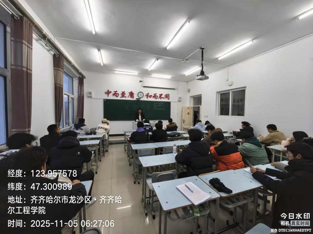 11月6日,本次安全教育主题班会电科251班于1号教学区1404举行。由辅导员陈星月主持。共有30余人参加。