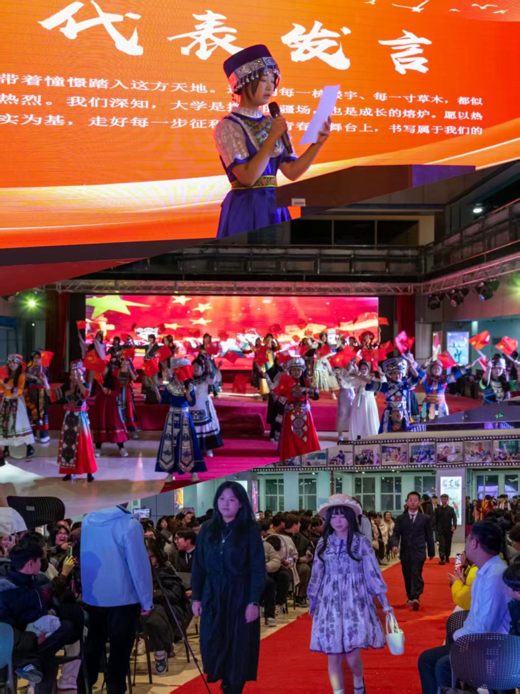 作为晚会重要组成部分,“我的美丽家乡”主题展演以宣讲形式生动演绎了各地区的风土人情,让观众沉浸式感受不同地域的文化韵味。多元文化交织碰撞,既展现了中华文明的博大精深,也传递出新生对故乡的深情厚谊。学生们用照片和文字记录家乡记忆,进一步强化了文化认同与情感联结。