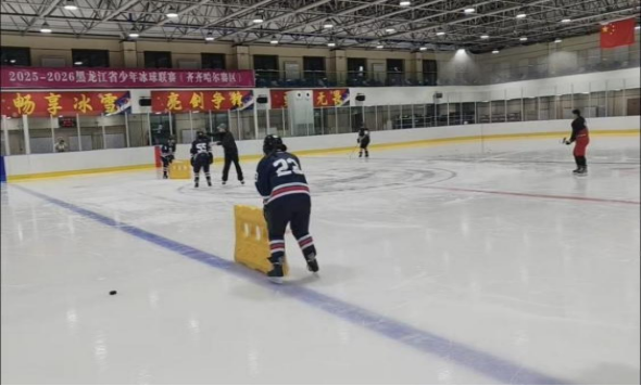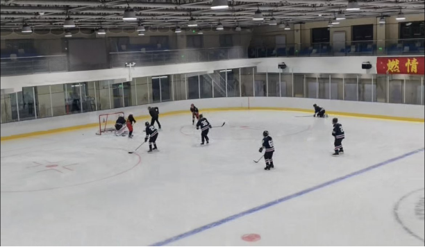 下午6时15分,热身环节圆满结束后,队伍移师冰球馆,正式教学围绕“技战术提升、团队协作培养、竞技精神塑造”三大核心目标全面铺展。安德烈教练精心设置标志桶障碍路线,要求学子们手持冰球杆,在冰面上完成变向、运球、绕桩等一系列高难度动作,既考验学子们的身体协调性与滑行技巧,更对冰球专项灵敏性提出了严苛要求。“注意保持杆头高度,切勿让冰球脱离控制范围!”教练在冰面上灵活滑行巡视,一边大声叮嘱,一边亲自示范。每当有学子流畅完成整套动作,他都会竖起大拇指给予真挚鼓励,极大地点燃了学子们的训练热情,冰球馆内洋溢着昂扬向上的训练氛围。