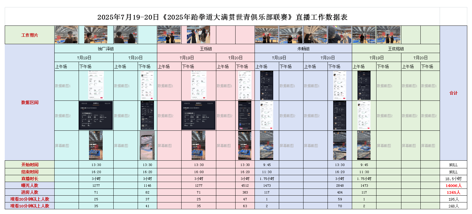 为及时向省、市广大跆拳道爱好者传递赛事信息,信息学院电商微专业实践班建三个直播工作组,从不同竞赛视角开展全程直播。历时两天,累计完成7个场次、18.5小时的直播工作,为大赛吸引观众流量14006人,其中1245人进入直播间观赛,195人观看时长超20分钟,442人观看时长超10分钟。这一良好的网络反响,不仅为赛事知名度提升、鹤城体育文化推广发挥了积极的媒体示范作用,还充分展现了我校北区体育场馆的优质条件、良好环境及承接大型赛事的完善能力,为北区体育服务产品网络品牌构建奠定了重要基础。