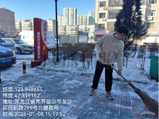 实践期间,小组组长姜岐率先垂范,在黑龙江省齐齐哈尔市龙沙区民航路 299 号北疆雅苑开展志愿服务活动,以实际行动践行社会责任,为社区建设注入青春力量,活动全程规范记录,确保实践成效可追溯。
