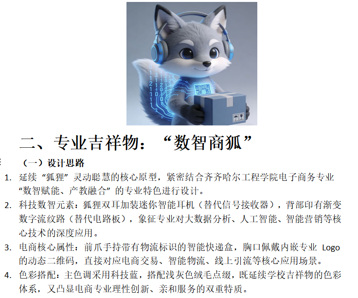 首先,指尖轻点AI工具,让创意构想化作具象符号,在交流碰撞中打磨造型色彩,于反复斟酌中深化内涵表达。电商232班蒋侠正、李松真同学与电商241班聂赫辰同学三位同学聚焦学校与专业双主题吉祥物设计,明确设计核心方向与需融入的文化元素,借助AI工具进行创意呈现,过程中相互交流想法、分享设计思路,不断优化吉祥物的造型、色彩与内涵表达;电商232班张爽同学积极主动参与社区扫雪志愿服务。她手持工具躬身前行,全力清除出行障碍,以志愿服务践行青春担当。
