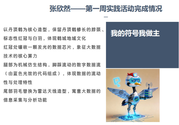 首先,张欣然同学以 “鹤城” 地域文化为灵感,设计了融合丹顶鹤造型与大数据芯片元素的吉祥物,巧妙将机械仿生结构与流动数据流结合,体现了专业特色。王棋同学则从学校工程教育理念出发,设计了融入齿轮、蓝图及 “齐工院” 校训铭牌的吉祥物形象,并完成了 “数据魔方” 核心符号设计,展现了工科院校的专业特质。