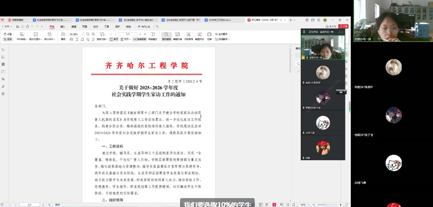 通过此次会议,毛一姝就社会实践学期家访工作的具体安排进行了说明,目的是希望获得学生的支持与理解,家校合作,助力学生未来发展。本次会议,各方在线上进行了深入的交谈,对之后社会实践学期的推进具有积极的意义。
