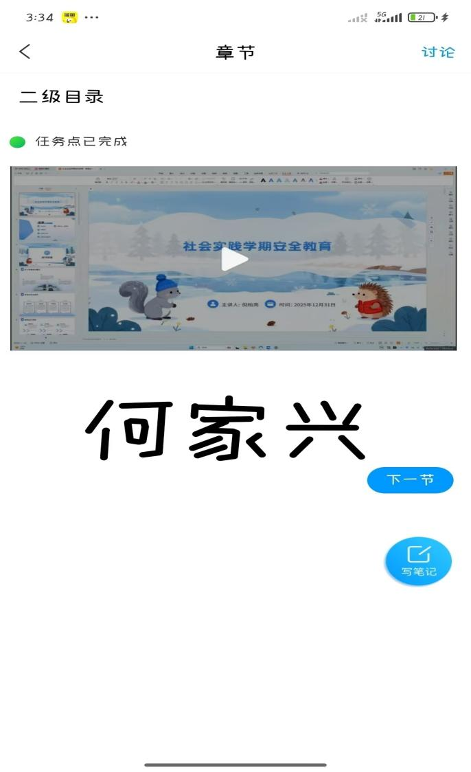 作为 2026 年社会实践学期的小组,第二周我们借助线上平台完成了安全教育专题学习。尽管是远程形式,大家仍以专注的状态投入全程,在线上完成了安全知识学习与理念深化的任务。