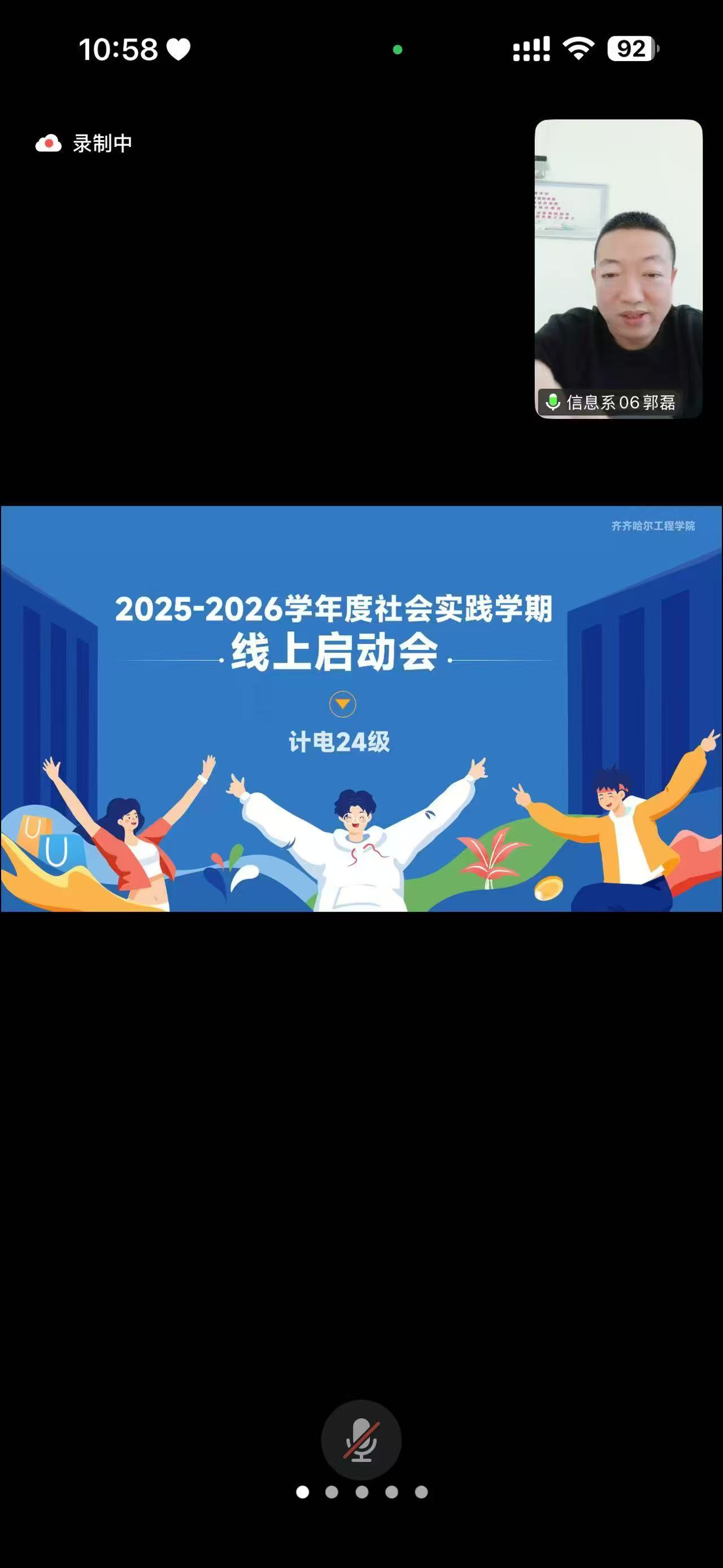 为扎实推进2025-2026学年社会实践学期各项工作开展,明确学习任务与要求,2026年1月14日上午,辅导员郭磊在腾讯会议,组织召开计电科24级召开2025-2026学年度社会实践学期线上启动会。计科24级、电科24级学生参会。