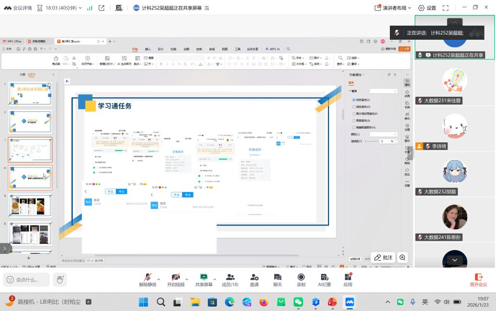 2026年1月23日晚,指导教师郭伟伟召开社会实践学期第三周指导会议,会议通过腾讯会议线上召开。