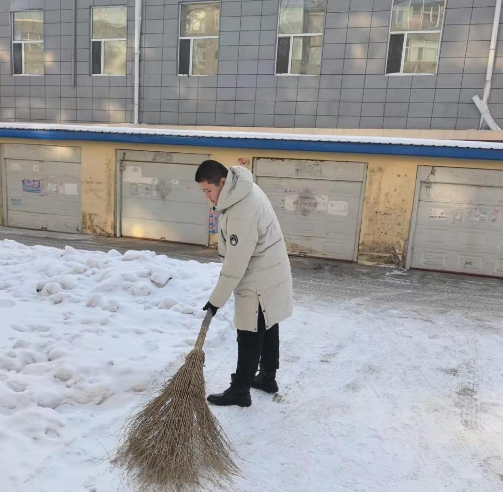 第三周社会实践已顺利落幕,本小组4名成员结合实际情况,分工开展基层服务活动,用实际行动践行责任与担当。其中3名成员何家兴、石寅壮、王志龙主动响应社区扫雪号召,提前备好铁锹、扫帚等工具,冒寒对社区主干道、人行道的积雪和结冰进行彻底清理,同时耐心疏导过往行人与车辆,提醒大家注意出行安全,高效完成清扫任务,获得社区工作人员与居民的一致好评。另有 1 名成员向雨歌前往家附近的理发店帮忙,主要负责整理顾客档案、核对洗护用品信息、引导顾客进店登记,在实践中熟悉了基层美发门店的运作流程,也有效减轻了店员的工作负担。