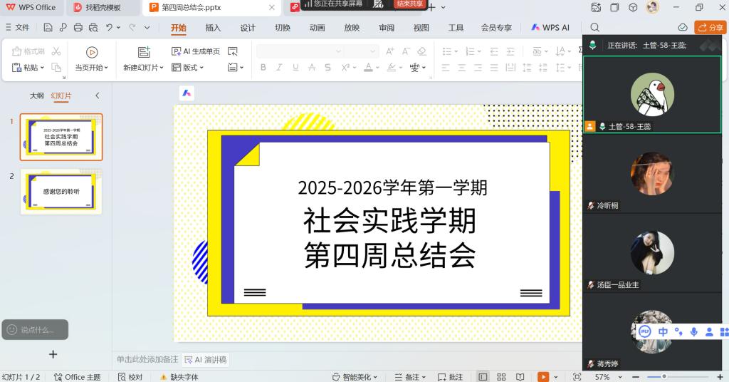 为进一步明确社会实践学期任务要求、筑牢假期安全防线,2026年1月30日下午18时,王蕊老师准时召开线上社会实践学期第四周指导会议,小组三名成员全员参会。