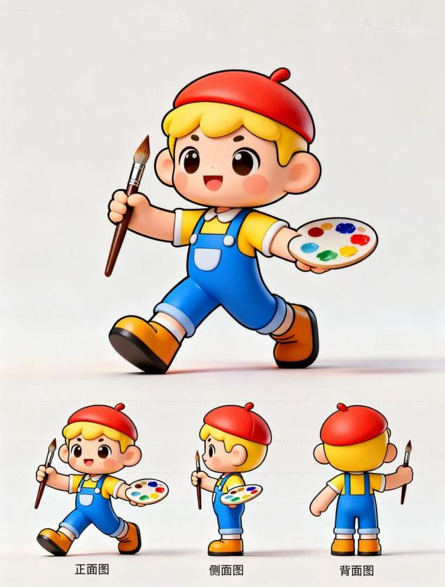 其中,“致未来一封信”聚焦学习、工作、生活三个维度,引导成员明确目标、记录成长;“我的符号我做主”以《设计心理学》为理论依托,结合AI辅助工具,推动设计思维与技术融合;“青春fun肆拍”围绕家乡新春美食与劳动实践,通过影像与调研展现饮食文化与劳动价值。李太赟、杨盼盼、李潮扬等同学也已完成各自项目规划,确保小组全员参与、协同推进。同时,李芊诺同学对专业IP形象展开了设计,设计基于视觉传达专业思维,通过标准化的正、侧、背三视图系统构建角色立体感与识别度,确保形象在不同媒介与场景中保持视觉统一,强化品牌传播力与延展性。