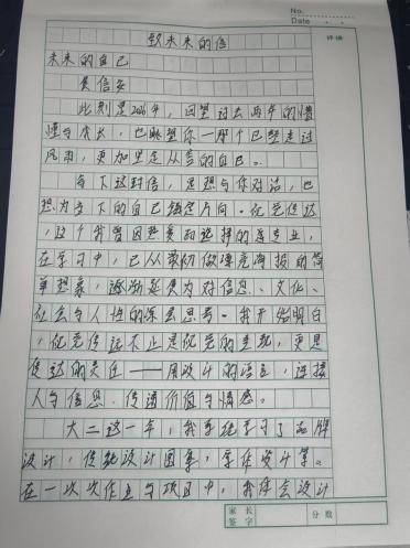 刘友鹏完成《给自己的一封信》实践任务,复盘过往学习生活的得失,梳理困惑与收获,明确新学期目标与方向。落笔间学会自我审视,更懂接纳不足、坚定初心,既沉淀了思绪,也收获了前行动力,为新阶段成长筑牢基础。