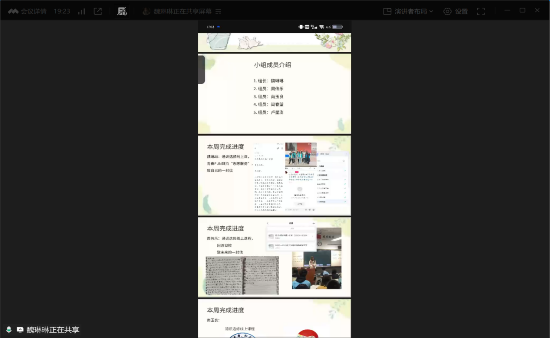 本周,在组长魏琳琳的带领下,小组五名成员持续深耕实践任务,以多元参与、务实奋进的姿态,在理论学习与实操探索中收获成长,让青春在实践舞台上绽放别样光彩。