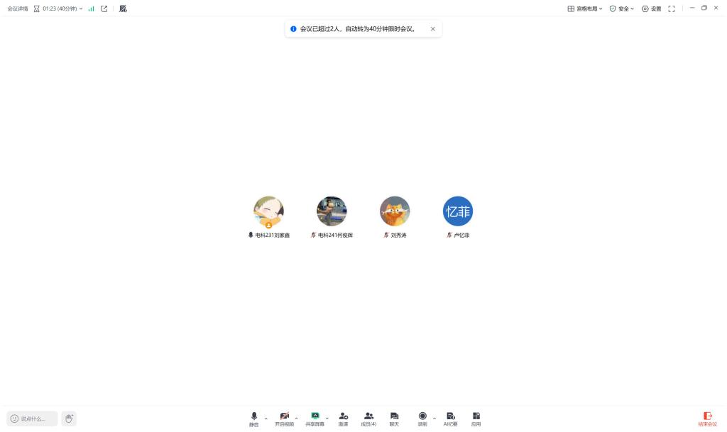 2026年2月6日下午,电子科学与技术专业刘家鑫小组通过线上会议汇报各成员志愿服务,视频拍摄及五育学习等社会实践活动,由组长刘家鑫主持,组员刘秀涛,何俊辉,卢忆菲共三人全部参加,各项核心任务均达成阶段性成果。