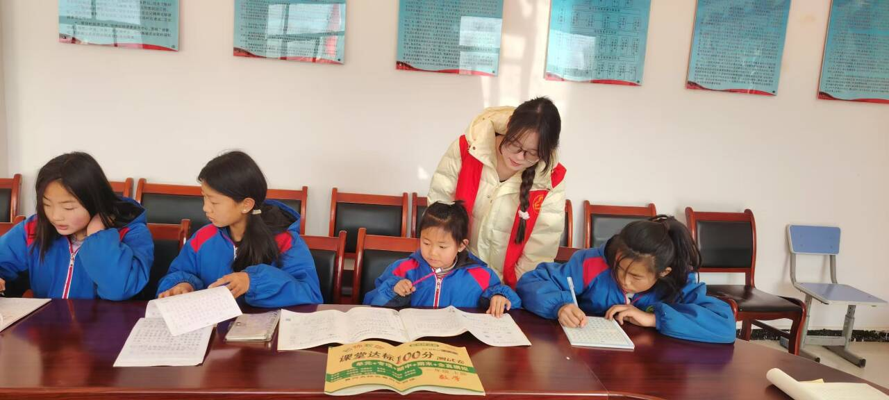 1月27日,在甘肃省白银市平川区铁路社区寒假托管班,视觉251班的胡杨同学也在陪伴孩子们度过充实假期。从一对一辅导作业到带领手工活动,她和其他志愿者一起,让社区的孩子们在安全温暖的环境中收获知识与快乐。