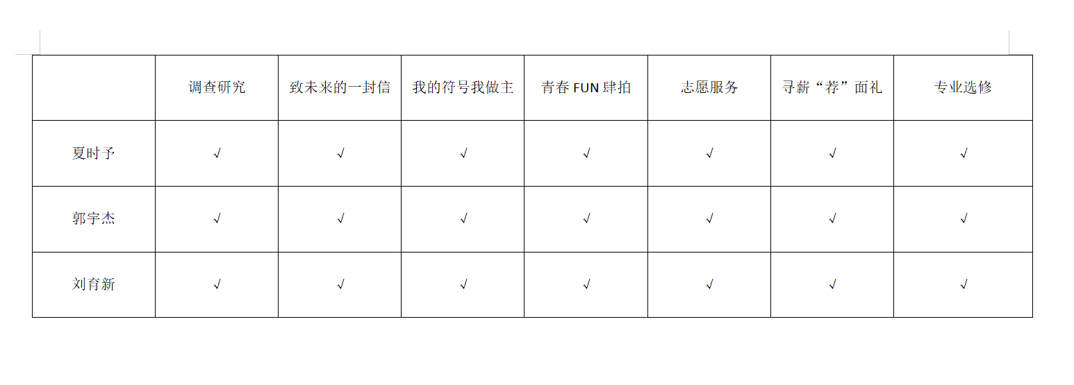 组长、大数据241班夏时予同学在组织协调中展现出较强的问题意识与解决能力,在关键时刻给予组员及时有效的支持。大数据242班郭宇杰同学在实践过程中主动沟通、积极承担任务,组织协调能力进一步提升,责任意识与坚持精神也得到加强。大数据241班刘育鑫同学在实践中对社会有了更为真实深入的体察,思想更加成熟,担当意识不断增强。