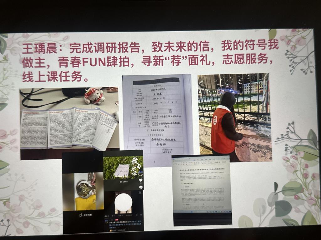 完成任务:调研报告、致未来的信、我的符号我做主、青春FUN肆拍、寻新“荐”面礼、志愿服务、线上课任务。
