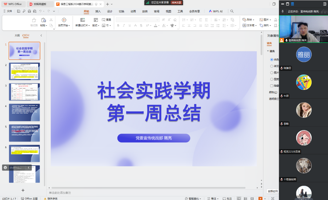 1月9日,生涯导师隋亮针对所指导的7名学生,召开社会实践第一周总结会,复盘前期工作并部署后续安排。会上,隋亮强调社会实践重要性及考核要求,拆解学校实践方案,明确必修内容标准与时间节点,提供选修建议并解答学分相关疑问。结合冬季特点,他重点强调交通、防火、居家、网络等安全要点;针对视频内容要求,专项指导拍摄、创作及发布规范。同时,他梳理出学生经验不均、视频创作能力不足、时间规划薄弱三大问题,针对性制定组长帮扶、持续指导视频创作、协助制定周进度表等措施。此次总结会为社会实践有序推进筑牢基础,助力学生高质量完成实践任务。