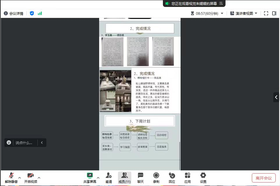 1月24日,党委宣传部生涯导师隋亮通过腾讯会议在线组织了社会实践学期第三周总结汇报会。逄铭煊、牛硕等7名学生参会。
