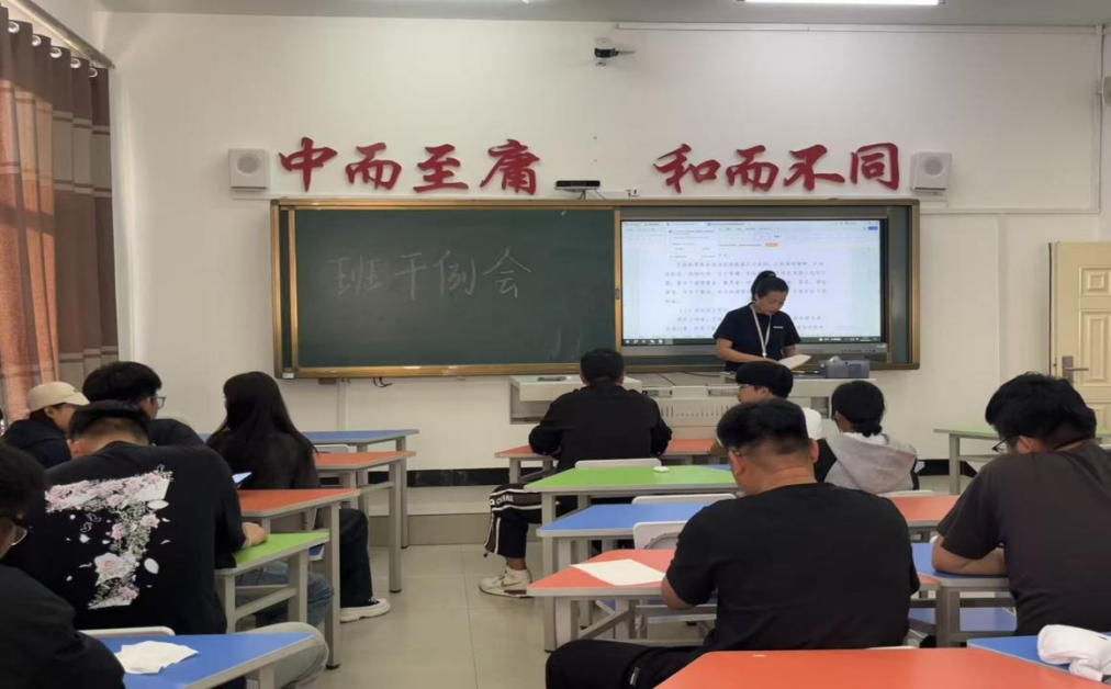 本次班会主要总结了近期班级内的情况,告诉下一步的任务.首先,辅导员薛苗苗详细介绍了十四个班干的岗位职责和要求,告诉大家分工明确,相互配合。班长的工作是全面负责班级的工作;团支书的工作是智慧团建以及团里的一些事,还要协助班长工作;学习委员的工作是负责学习的相关事务;生活委员的工作是购买班级需要的物资,并带领学生打扫各分担区的卫生;宣传委员的工作是班级宣传,以及活动报道;档案员的工作是记录班级会议记录,整理学生档案,和宣传委员工作配合;文艺委员的工作是组织策划文艺活动;体育委员的工作是负责早操和体育课;纪检委员的工作是检查上课和晚自习同学们的出勤情况;心理委员的工作是关注同学们的心理状态,必要性给予帮助以及心理疏导;青工委员的工作是负责志愿服务和社会实践活动;生涯委员的工作是收集就业信息;创业委员的工作是创新创业活动与竞赛;组织委员的工作是负责班级组织建设。其次,班干是连接学校、老师与同学的核心纽带,主要作用可概括为上传下达、服务同学、组织管理、凝聚班级核心维度。上传下达,保障信息通畅,及时向班级同学传达学校、学院的通知(如选课安排、评奖评优、活动要求等),避免信息遗漏。收集同学的意见和需求(如课程反馈、生活困难等),整理后反馈给老师或学校相关部门,推动问题解决。服务同学,解决实际需求,提供便利,协助老师完成日常事务,如收发作业、统计信息(考勤、奖学金申请材料等),减少同学和老师的沟通成本。最后,班干要关注同学的实际困难,比如帮助生病同学协调补课、为贫困生对接资助政策、协助毕业季同学处理就业或论文相关事宜。凝聚班级,营造氛围,增强集体归属感,策划并组织班级活动,打破同学间的陌生感,增进彼此了解。