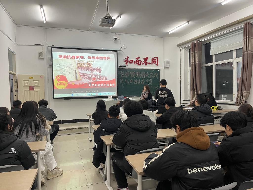 11月10日晚上,艺术与体育学院团总支于一号教学区A区1402教室开展以“重读抗战家书 传承家国情怀”为主题的宣传教育活动,此次活动由艺术与体育学院团总支组织部部长李远娜主持,共66余人参加。