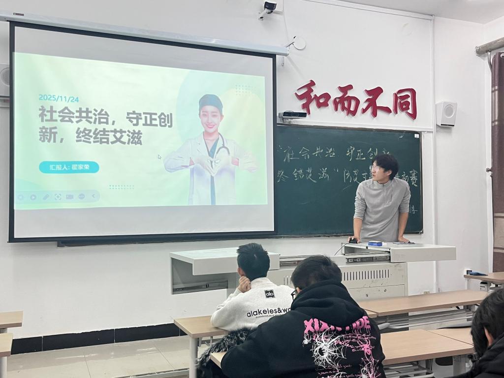 为普及艾滋病防治知识,增强学生自我保护意识,11月24日下午,信息学院团委在一号教学楼1402教室开展“社会共治 守正创新,终结艾滋”防艾主题宣讲初赛,本次活动由青工部部员杨玺橦主持,40余名同学积极参加。