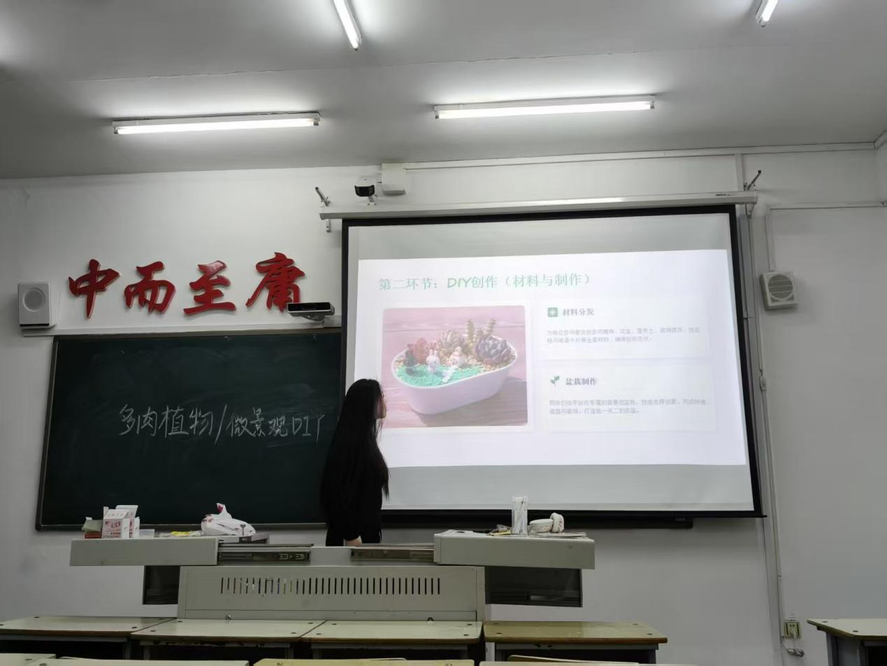 3月12日晚,艺术与体育学院团委在一号教学区1113教室举办“多肉植物/微景观DIY”植树节主题活动,由视觉专升本251任雪主持,共52人参加。