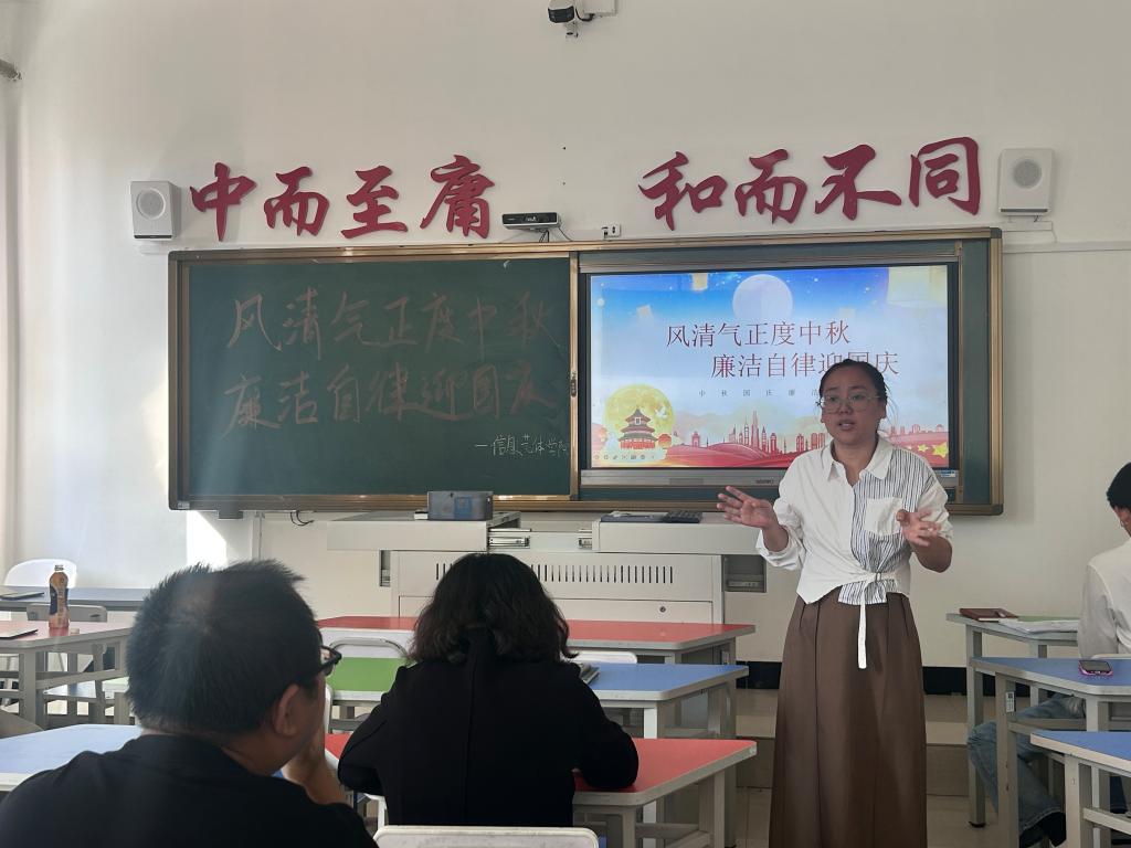 为深入贯彻落实廉洁自律要求,营造风清气正的节日氛围,在中秋、国庆双节来临之际,齐齐哈尔工程学院信息学院党委于2025年9月30日上午11点,组织全体教职工在1号教学楼1405教室召开双节前廉洁教育会议,旨在通过专题学习与警示教育,引导全体教工守规矩、知敬畏,筑牢廉洁思想防线,确保度过一个清廉、文明的假期。