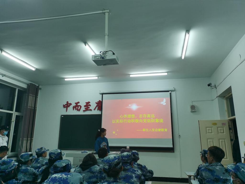 最后党员学长蔡蛟燕讲到入党启蒙教育是思想政治教育的重要内容,是大学生树立正确的世界观、人生观和价值观的重要一课。号召同学们要学习新思想,争做新青年,同时,希望同学们多参加一些活动,变成一个优秀的人,能够以实际行动,积极向党组织靠拢,早日成为一个优秀的中共党员。