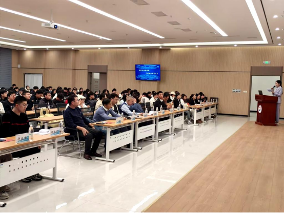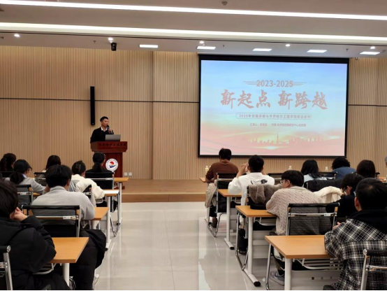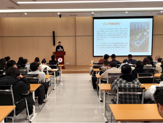 宫玉斌作产教融合实践专题报告。他系统介绍了产教基地的建设进展、运行模式与未来规划,全面展示了学校在产教融合实体化运营与平台建设方面的成果与资源优势,让与会嘉宾对学校产教融合有了更清晰的认知。