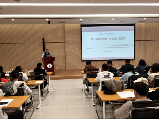 曹竞时简要介绍了学院整体发展情况,为后续专业研讨奠定了背景基础。信息学院与艺术与体育学院的姜岩、高敏、关娜、韩楠楠四位专业负责人,分别围绕各专业的发展现状、核心方向与建设目标进行了阐述,体现了学院在专业布局上的系统规划与创新活力。